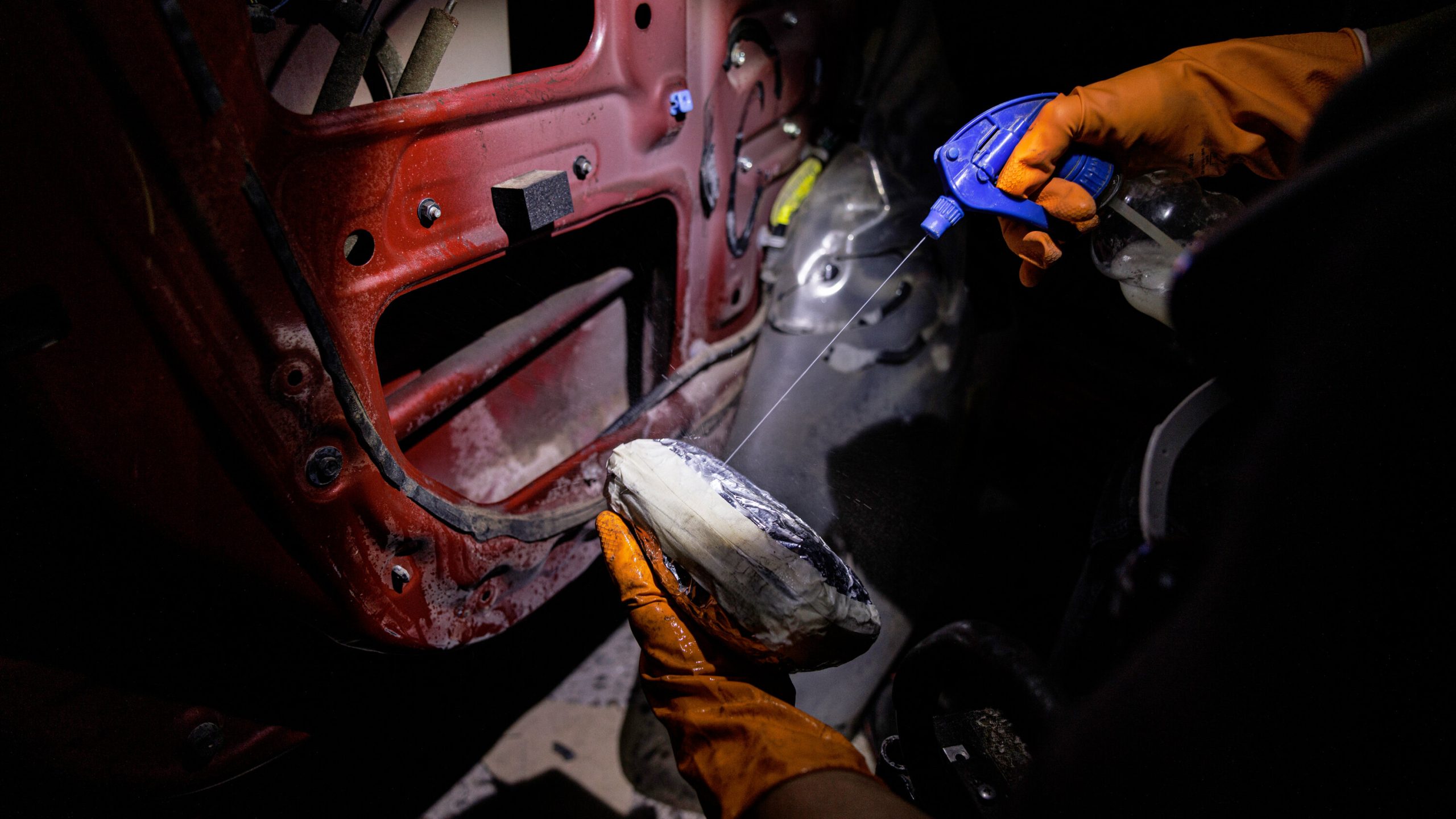 Para burlar la detección canina y los rayos X, los paquetes de fentanilo se envuelven en aluminio, se rocían con cloro y se recubren con papel carbón. Un mecánico, citado por el medio, relató cómo construye compartimentos ocultos en vehículos, soldados detrás de los paneles de las puertas, especialmente en autos comunes como Honda, Nissan o Toyota, para no levantar sospechas.
