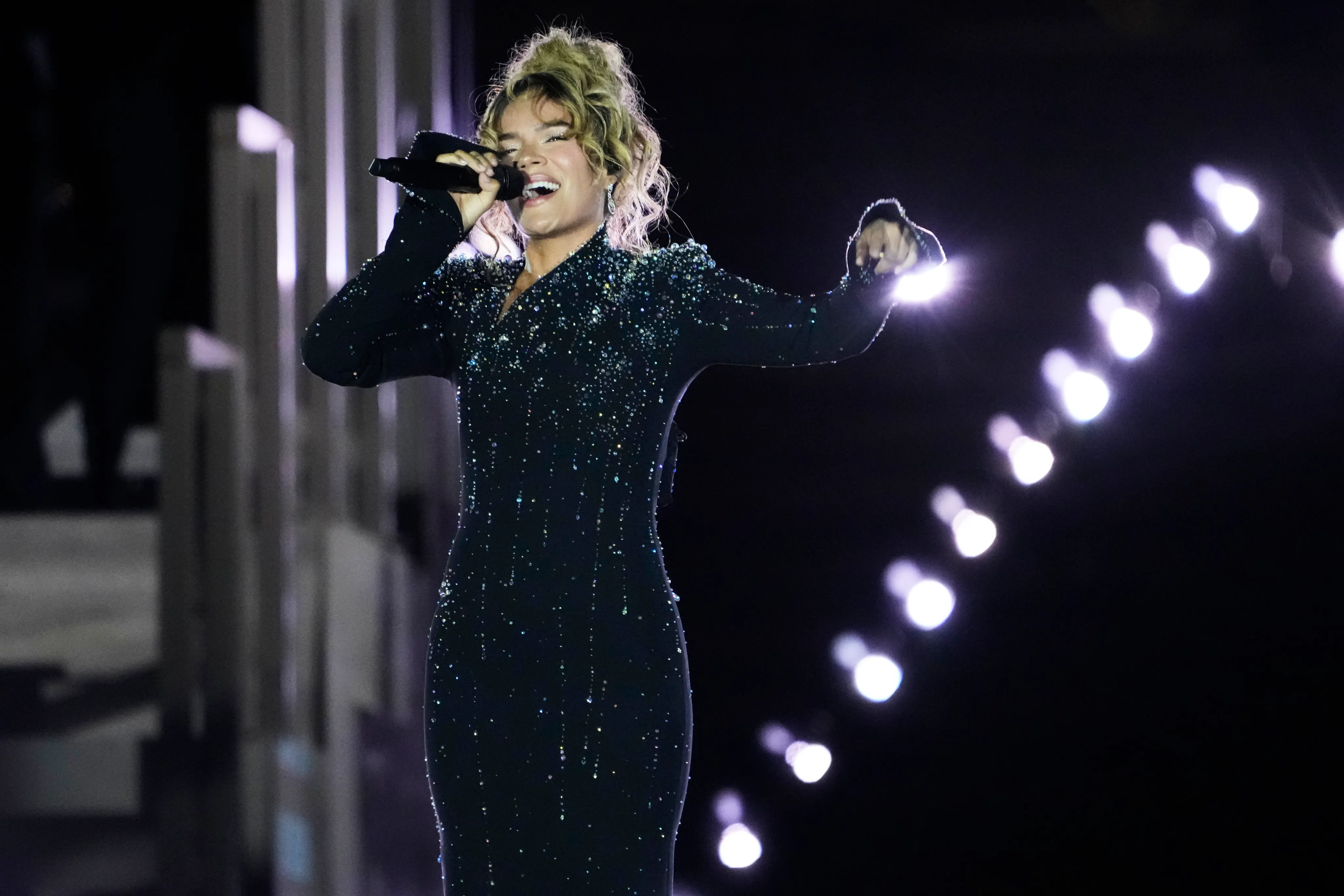 Con un elegante vestido negro con pedrería, Karol G interpretó su éxito Mientras me curo del cora, antes de regresar al escenario para cantar a dúo con Bocelli el clásico Vivo por ella, provocando ovaciones. Banderas de distintos países latinoamericanos ondearon entre el público, que viajó desde diversas regiones solo para verla.