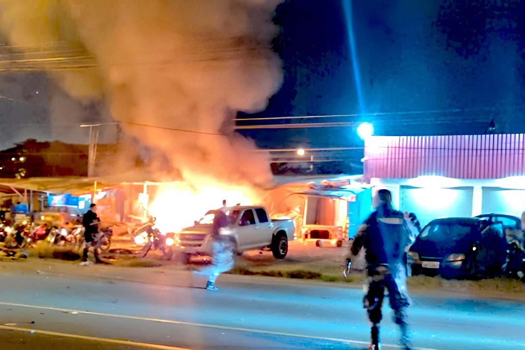 Un automóvil en llamas estalló frente a la entrada de la cárcel regional de Guayaquil, Ecuador, un día después del intento de asesinato del director de la prisión por parte de sicarios.