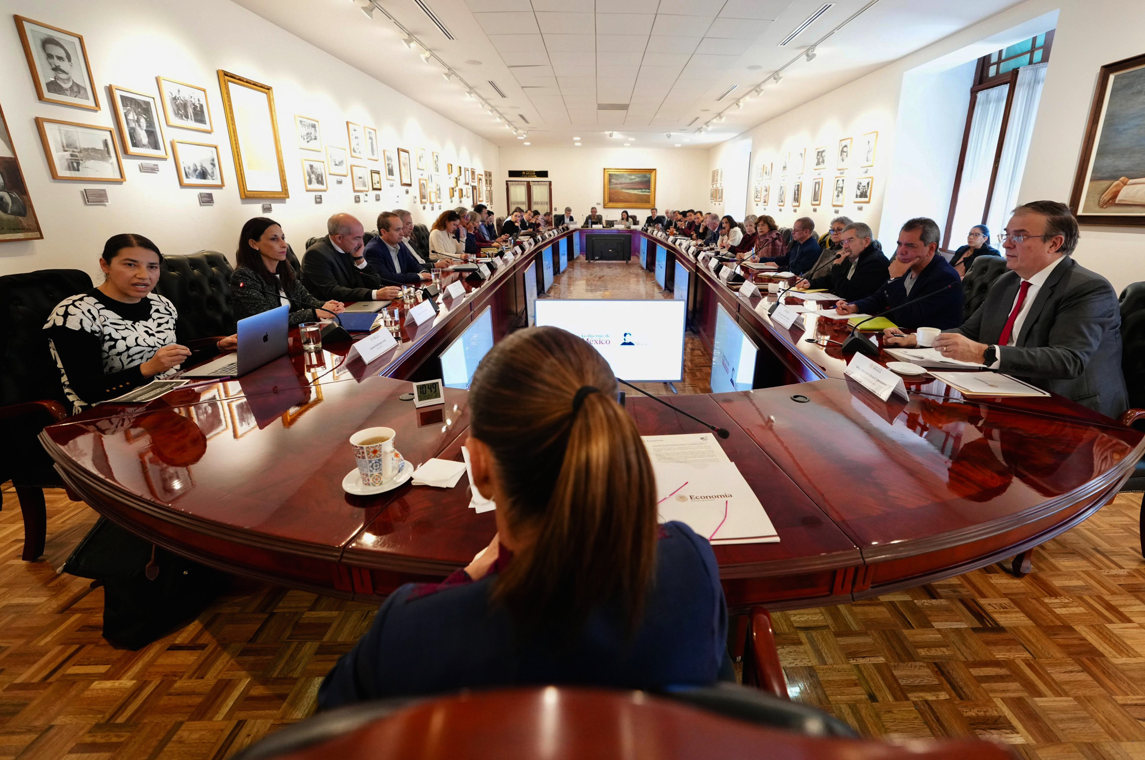 El encuentro incluyó a subsecretarios clave en áreas relacionadas con comercio exterior, planeación económica, transición energética y desarrollo sostenible, así como a funcionarios de instituciones financieras públicas como Nacional Financiera (Nafin) y el Banco Nacional de Obras y Servicios Públicos (Banobras), además del jefe del Servicio de Administración Tributaria (SAT).