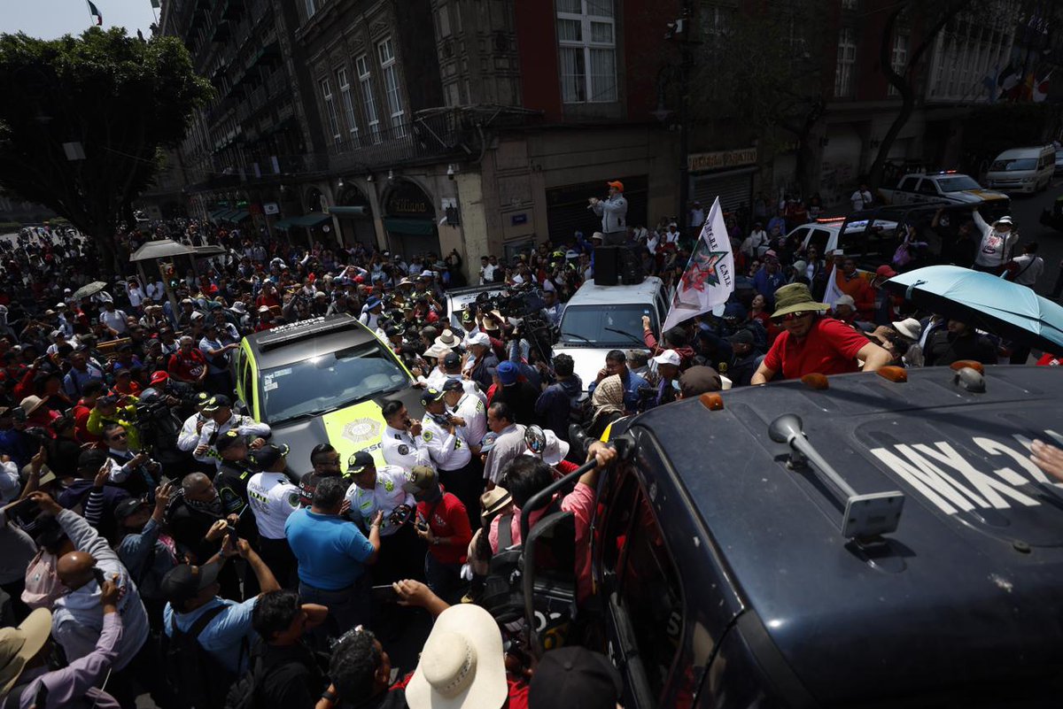 📢📢📢 La #CNTE en la ciudad de #México; mientras unos se instalan en plantón en el Zócalo capitalino de forma pacífica, otros grupos más aguerridos riñen con policías para poder ingresar sus vehículos y equipos de sonido. En tanto, la presidenta @Claudiashein señalaba está… pic.twitter.com/hx1BLpsZM4