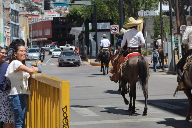 Entre sonido de tambores, música mexicana y aplausos, más de 200 charros desfilaron por las principales calles del centro de Pachuca para conmemorar su día.