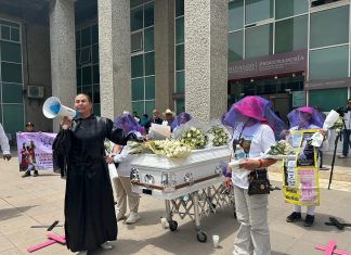 Con el cuerpo presente de Gloria Sintia Saldaña González, familiares acudieron a las instalaciones de la Procuraduría General de Justicia del Estado de Hidalgo...