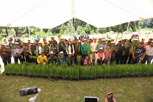 En la comunidad de Peñuelas, Pueblo Nuevo, junto a la Diputada Blanca Alcalá, el Mtro. Fernando Silva Triste, titular de SEMARNAT Puebla, el Ing. Rolando Montero, titular de la Promotoría de Desarrollo Forestal, así como de Santiago Rodríguez, Director de Desarrollo Forestal del municipio, se plantaron más de mil árboles de la especie pinus patula en 1.5 hectáreas de superficie.