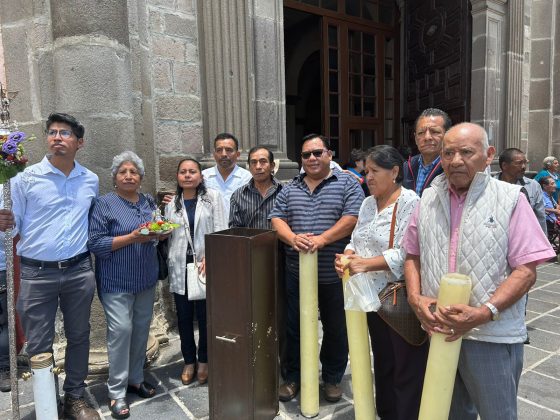Con col morada, calabaza, legumbres, rábanos, y diferentes frutas fueron adornadas las imágenes de los 10 barrios de este municipio, desde el mediodía comenzaron a llegar al convento de San Gabriel para entrar en procesión a la Capilla Real donde se realizó una ceremonia religiosa.