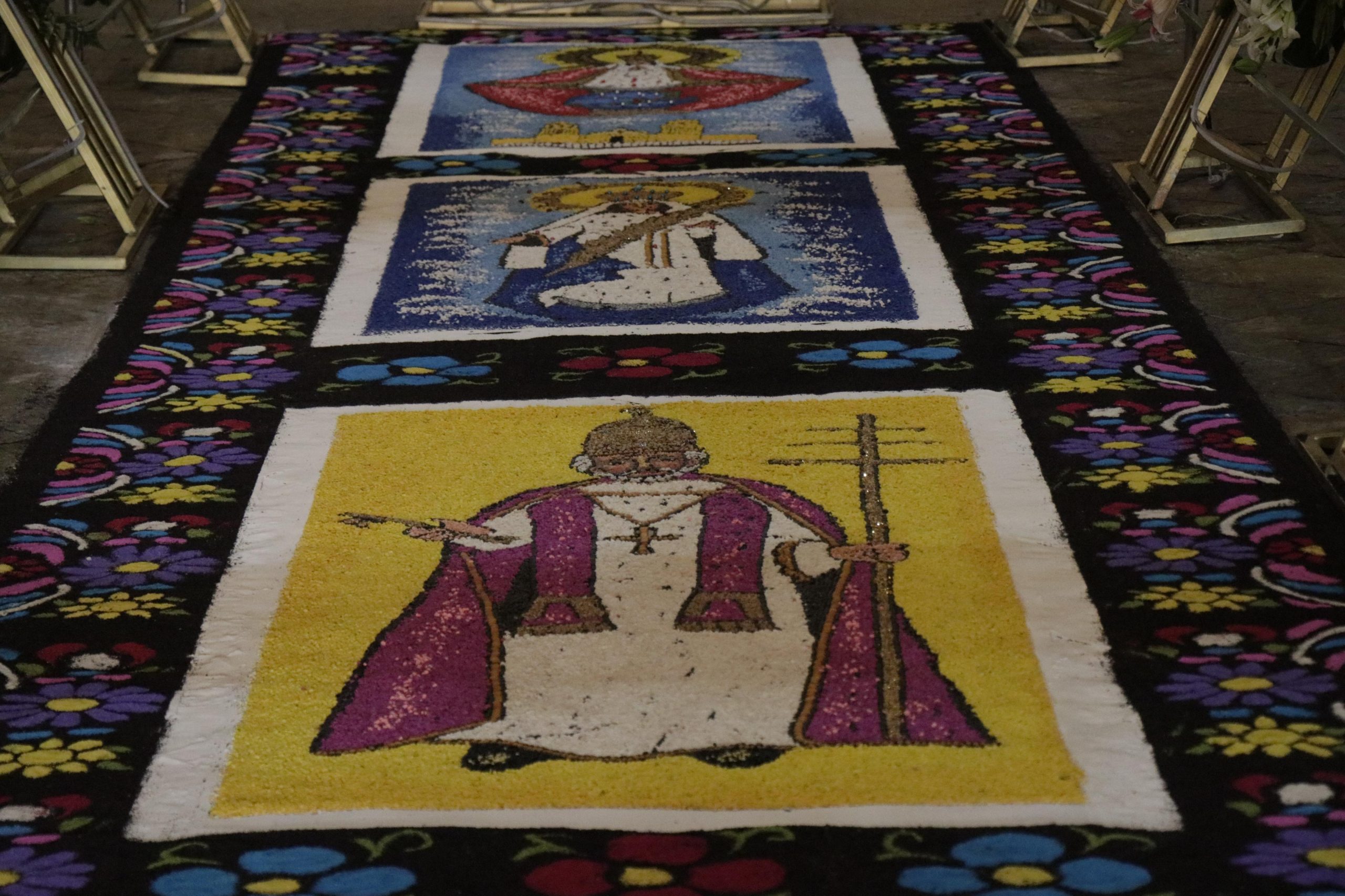 La colocación de los tapetes marcó el inicio de las actividades de la feria “Cultura y Tradición”, que incluye veladas musicales y eventos comunitarios. La comunidad respondió con entusiasmo, llenando el recinto para admirar el arte efímero y rendir tributo a la Virgen.