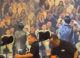 Un video que muestra a un miembro del equipo de Christian Nodal oliendo y retirando sus bebidas durante un concierto en el Palenque del...
