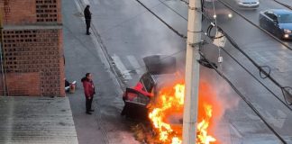 Camioneta es consumida totalmente por el fuego en la 11 sur