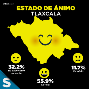 Este mismo ejercicio muestra que casi la mitad de la población nacional no sabe definir como se siente o considera que tiene altibajos considerables en su estado de ánimo en el caso de Tlaxcala un 32.2% de sus habitantes secundaron esta afirmación.