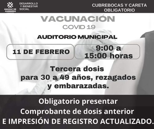 La administración municipal de Amaxac de Guerrero, anunció la continuación de la estrategia nacional de vacunación contra Covid-19, misma que llegará a la demarcación el próximo once de febrero.