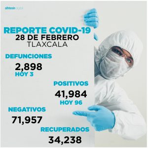 Los datos de la SESA registrados en la plataforma nacional del Sistema de Vigilancia Epidemiológica de Enfermedades Respiratorias (Sisver), confirmaron 96 casos positivos de Covid-19 y tres defunciones, el 28 de febrero de 2022 en la entidad.