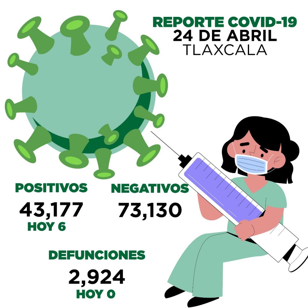 Los datos de la SESA registrados en la plataforma nacional del Sistema de Vigilancia Epidemiológica de Enfermedades Respiratorias (Sisver), confirmaron seis casos positivos de Covid-19 y cero defunciones, el 24 de abril de 2022 en la entidad.