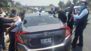 Por lo que al encontrarse circulando sobre libramiento Apizaco-Huamantla, vía en la que se realizan trabajos de reparación, se observó a través de las cámaras de C4-Cesesp a dos vehículos con las características antes mencionadas, iniciando los protocolos para su detención provisional y corroborar la situación.