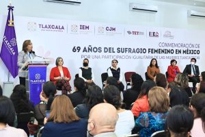 La gobernadora Lorena Cuéllar Cisneros encabezó la ceremonia conmemorativa por los 69 años del sufragio femenino en México “Por una participación igualitaria de las mujeres tlaxcaltecas”, donde reiteró su respaldo a este sector de la población para brindarles mayores oportunidades.