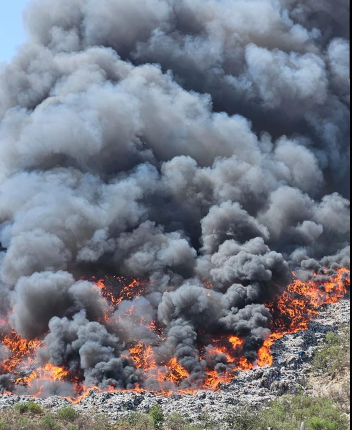 La Secretaría de Medio Ambiente (SMA), a través de la Dirección de Desarrollo Sustentable, atiende el incendio que se registró la tarde de este sábado 17 de junio, a 30 metros de la zona de llantas del relleno sanitario de Panotla.