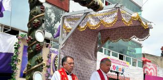 El Obispo de Tlaxcala bendijo a la población durante el Viacrucis...